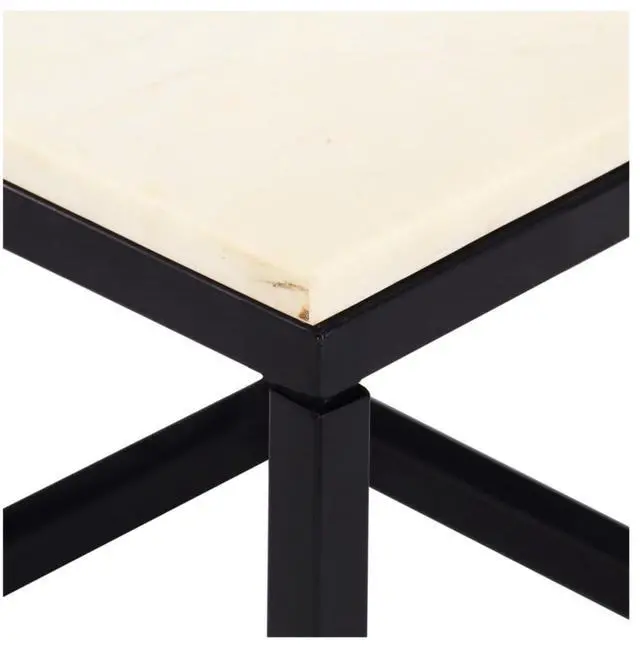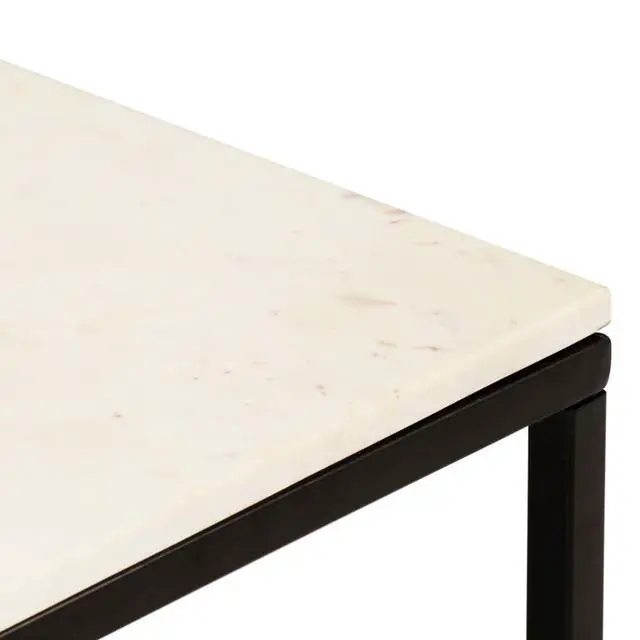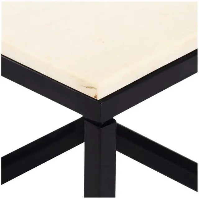 Our trendy modern coffee table suits any room in your home. Made of real stone and strong iron frame with a powder-coated finish, this table is stable and durable. It provides a stable and secure surface to place drinks, vases, fruit bowls and other ornaments. This end table is easy to clean just with a damp cloth. Complement your home decor with our stylish couch table!
