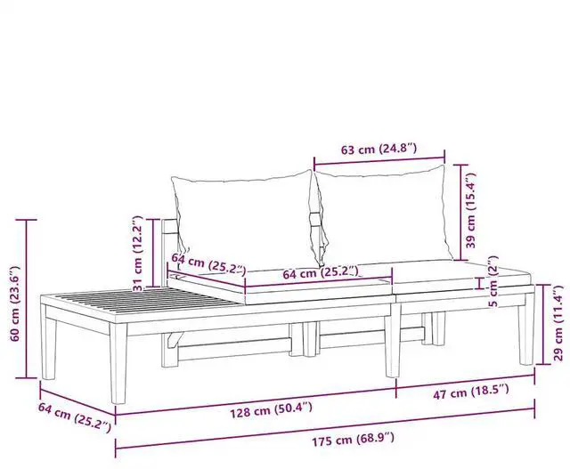Additionally, the exquisite craftsmanship and beautiful wood grains make every piece slightly different from the next. The included cushions add more comfort while resting. In addition, the table can be assembled both on the left or right side according to your demands.