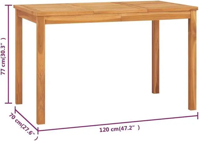 This solid wooden dining table with a water-based finish will add a touch of natural charm to your kitchen, garden or patio. Constructed from extremely durable teak hard wood, this piece of teak furniture has been seasoned, kiln dried and then fine sanded to give a very smooth appearance.