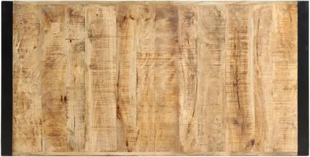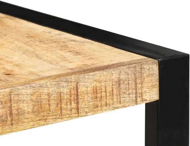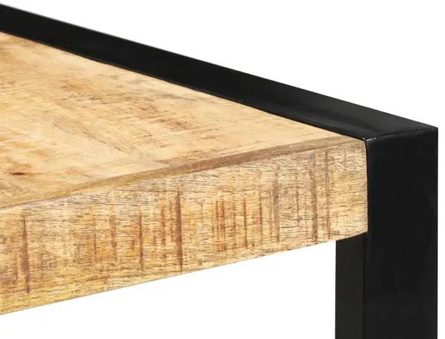 The solid mango wood top, measuring 55.1 in in length, brings an earthy feel, matched with strong steel legs that stand tall at 43.3 in, making it just right for casual dining or hangouts.