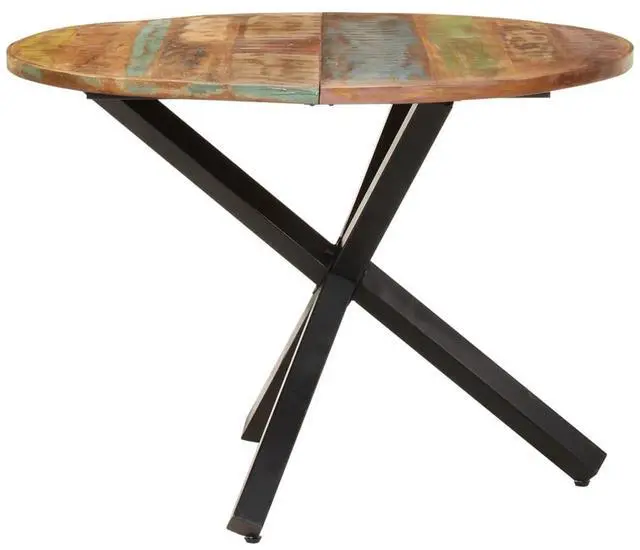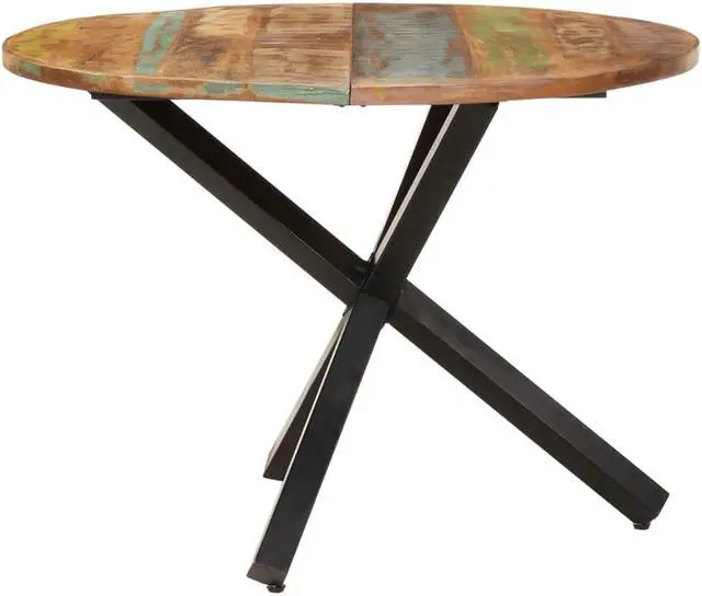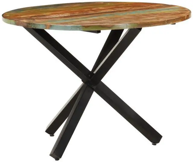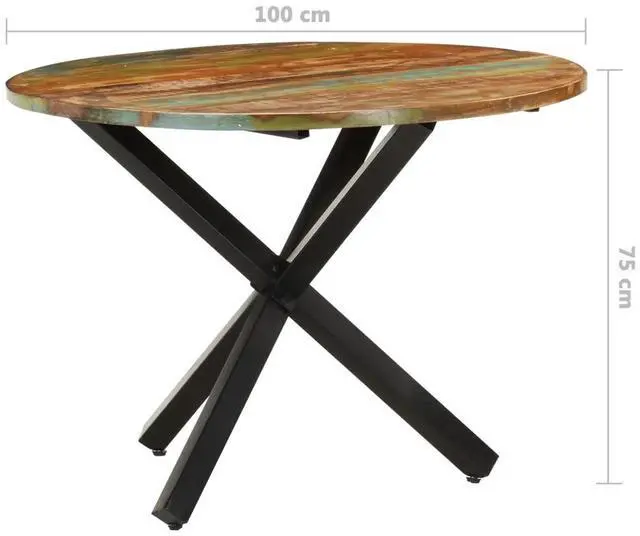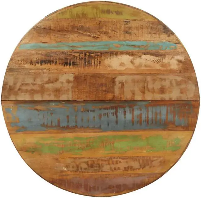 321682 vidaXL Dining Table Round 39.4"x39.4"x29.5" Solid Reclaimed Wood Enjoy perfect meal time with your family or friends on this wooden dining table every day! This dinner table is made of reclaimed wood that has been sourced from joists, floors and support beams from old buildings being demolished, and can consist of different types of wood like pine, teak, beech, oak, cedar, mango wood, acacia, etc. This means the reclaimed wood retains the characteristics of these different types of wood. Reclaimed wood is already aged, weathered and dried, so it doesn't shrink or bend. This table is fully handmade and the beautiful wood grains make every piece of furniture unique and slightly different from each other. The sturdy tabletop can be used to place foods, drinks or other decorative items. Important note: The colors vary from piece to piece, making each piece unique. The delivery is random.