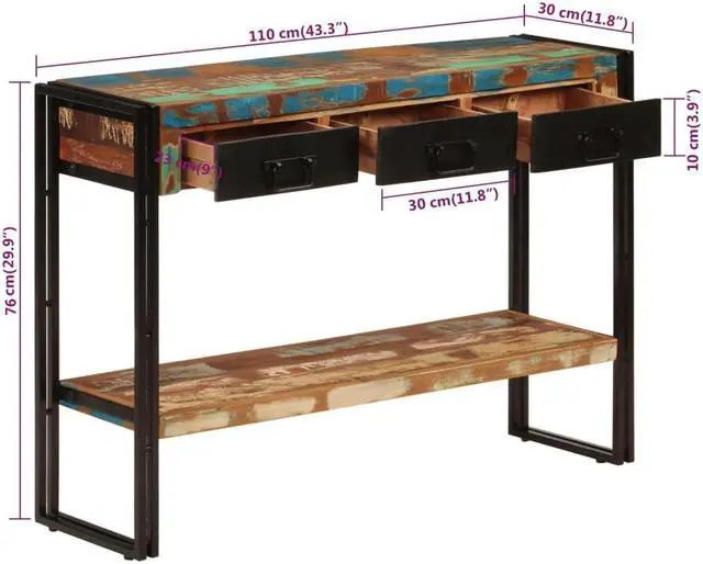 Ample storage: The table has 3 drawers and 1 shelf, providing ample space for storing small items such as keys, notepads, and other knick-knacks.