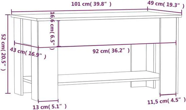 Lift-top design: The tabletop of this sofa table can be smoothly lifted to a comfortable height, converting it to a spot where you can work or dine.