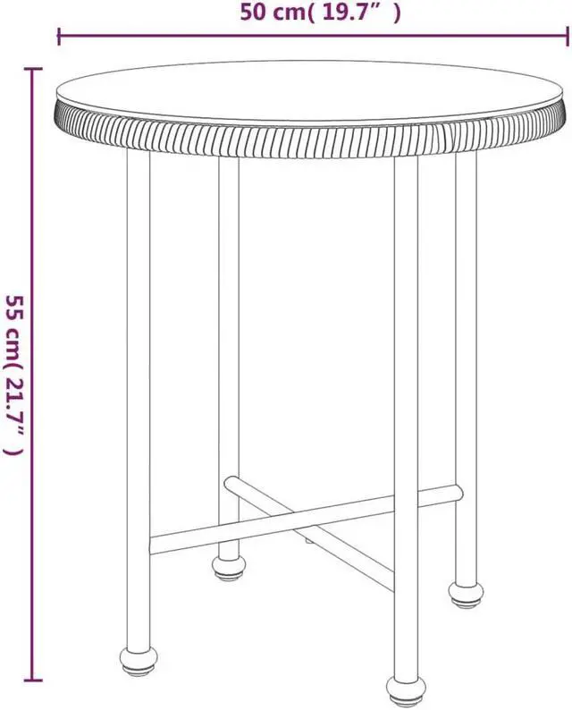 Table top dimensions: 19.7" x 0.2" (Diameter x H)