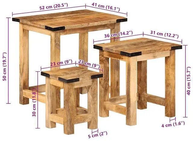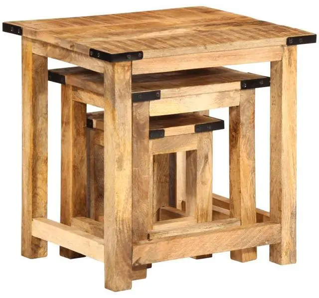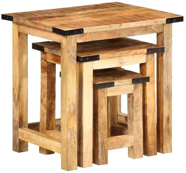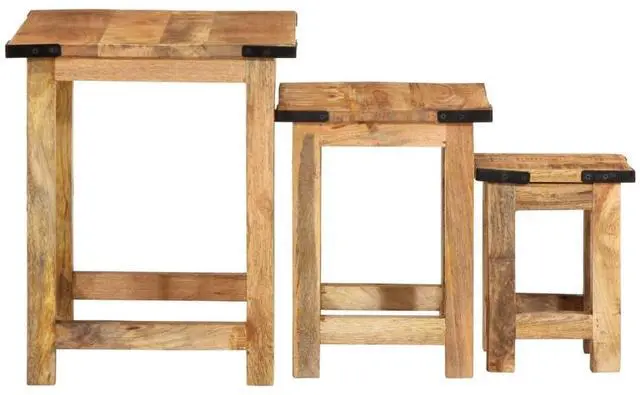 These three nesting side tables are a great mix of functionality and industrial flair, perfect for any living room, bedroom, or office. The rough mango wood finish and solid iron legs create a modern vibe that fits right in with your decor while providing practical support for your everyday items.