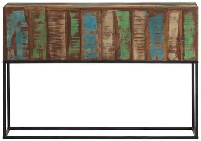 This Console Table is a stunning piece that perfectly showcases industrial design, making it ideal for sprucing up any entryway or hallway. With a solid reclaimed wood top and matte black iron frame, it makes a bold statement while providing practical storage and display space.