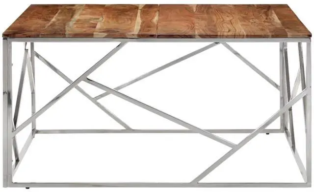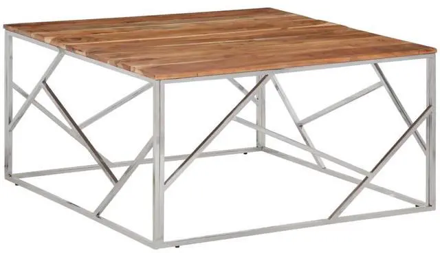 This coffee table is a smashing mix of solid acacia wood and stainless steel, creating a standout piece for your living room or hallway. With its smooth finish and modern vibe, it effortlessly boosts your decor while offering a functional spot for drinks, snacks, or decorative bits.