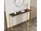 Sintered stone features beautiful marble-effect pattern table top, combined with gold metal legs for a modern appeal, a stylish and unobtrusive addition to the foyer or hall way. The ideal choice for storing the basket or displaying houseplants well.