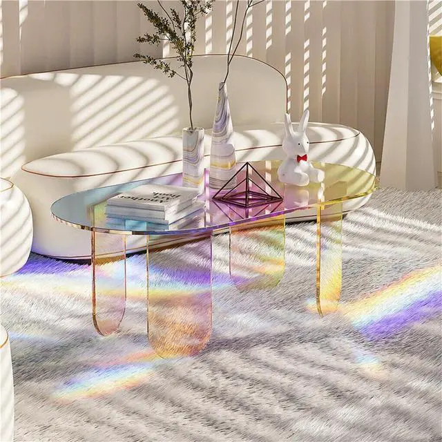 Colorful Art Acrylic TableThe rainbow-colored coffee table is made of colorful acrylic plates, at the same angle, each acrylic plate reflects different colors, and the colors change with the change of the angle of the light, which is charming and shows taste and bring vitality and high-end visual feast to living space