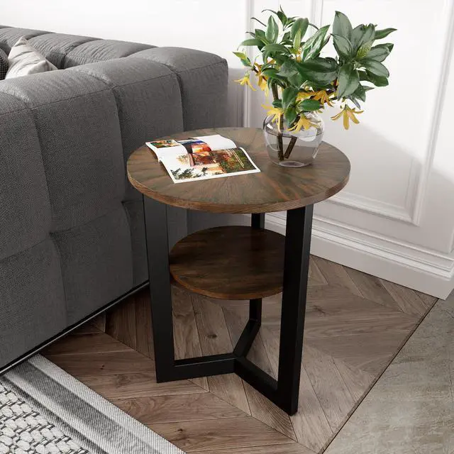 As an end table next to the couch in the living room, an additional shelf in the hallway, or as a bedside table next to your bedit rounds off your space in any way. The 19.3" dia. side table has stable steel legs, which are additionally reinforced by round tubes. The table does not yield whether you place a 130 lb bronze statue on the top shelf, nor when you use it for many years.