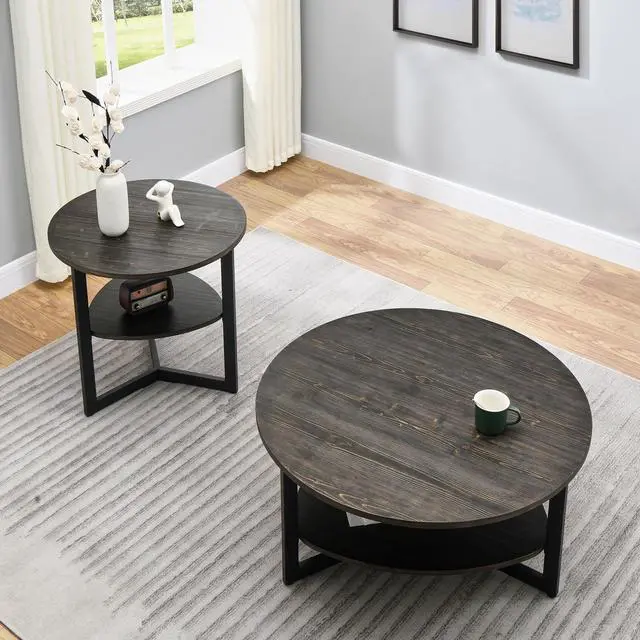 2-tier round coffee table provide spacious space for living room, give extra space to save and make you home more clear and tidy. using solid wood material make the coffee table more durable. The legs of coffee table are sturdy. Rugged materials for long-term use, waterproof and wear-resistant, Multi-step finish process achieves both good looks and superior durability. The important is easy to assemble.