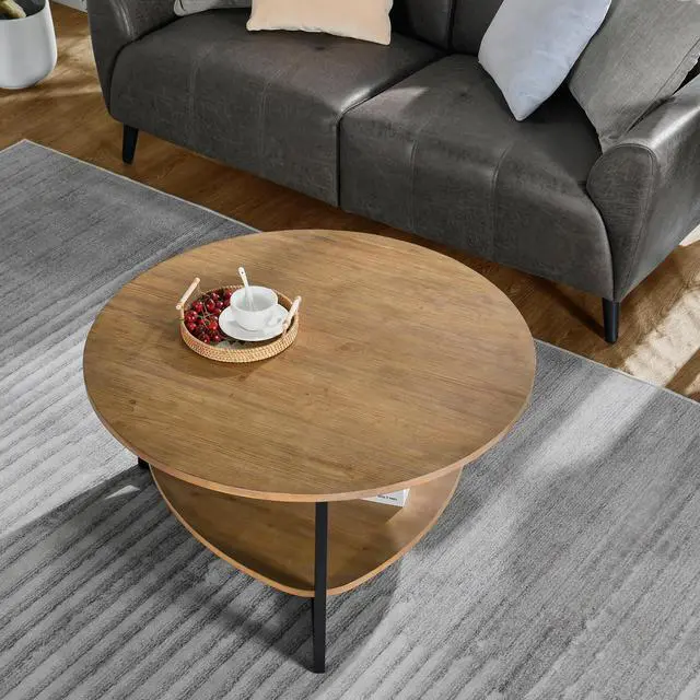 2-tier round coffee table provide spacious space for living room, give extra space to save and make you home more clear and tidy. using solid wood material make the coffee table more durable. The legs of coffee table are sturdy. Rugged materials for long-term use, waterproof and wear-resistant, Multi-step finish process achieves both good looks and superior durability. The important is easy to assemble.