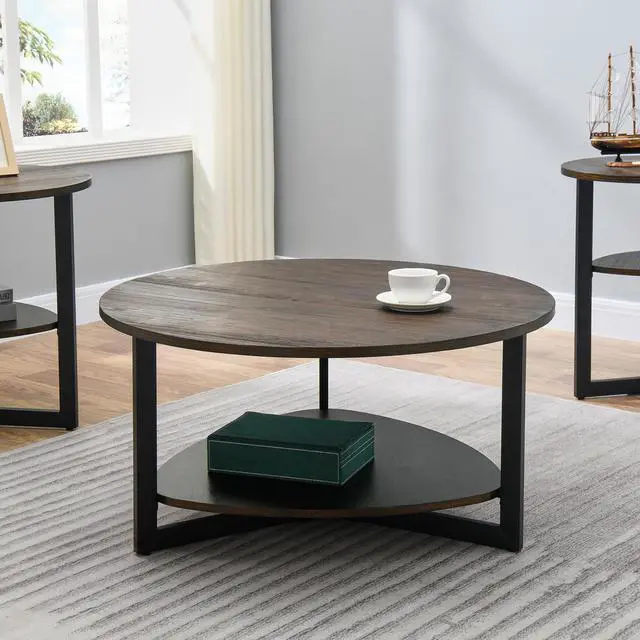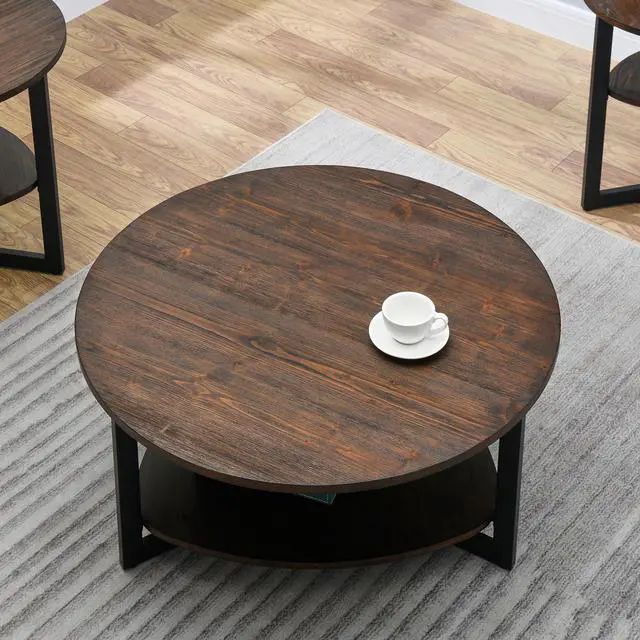 2-tier round coffee table provide spacious space for living room, give extra space to save and make you home more clear and tidy. using solid wood material make the coffee table more durable. The legs of coffee table are sturdy. Rugged materials for long-term use, waterproof and wear-resistant, Multi-step finish process achieves both good looks and superior durability. The important is easy to assemble.