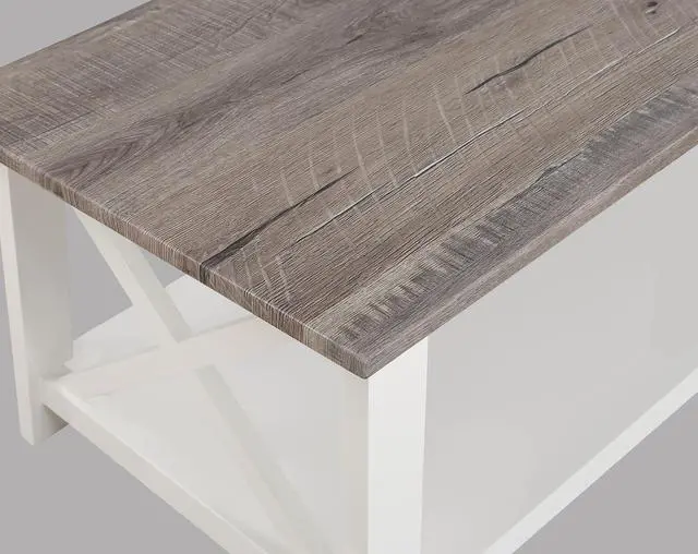 Contemporary Style Wooden Top Rectangular Shape Coffee Table Square Shape End Table White Brown Finish Easy to Assembly Listing Includes: - 1x Coffee Table And 2x End Tables Only.