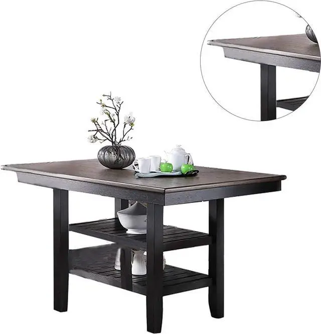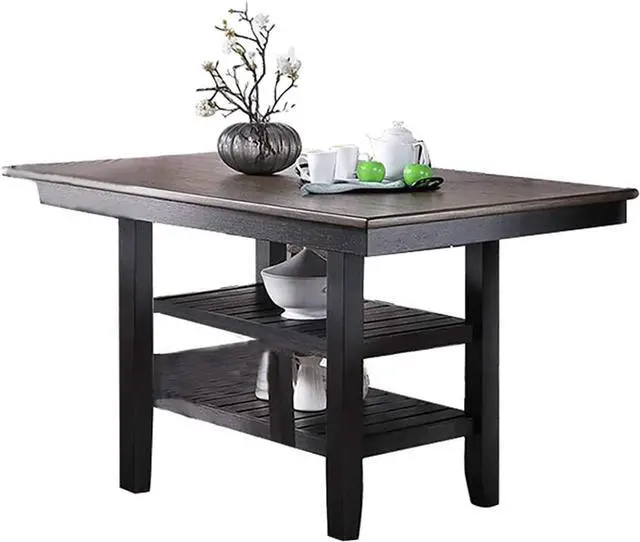1pc Cunter Height Dining Table Dark Coffee Finish Kitchen Breakfast Dining Room Furniture Table w 2x Storage Shelve Rubber wood