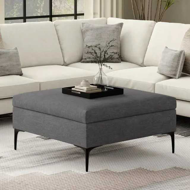 Multifunctional ottoman can be used in the living room or family room as a coffee table, footstool, or extra seating.