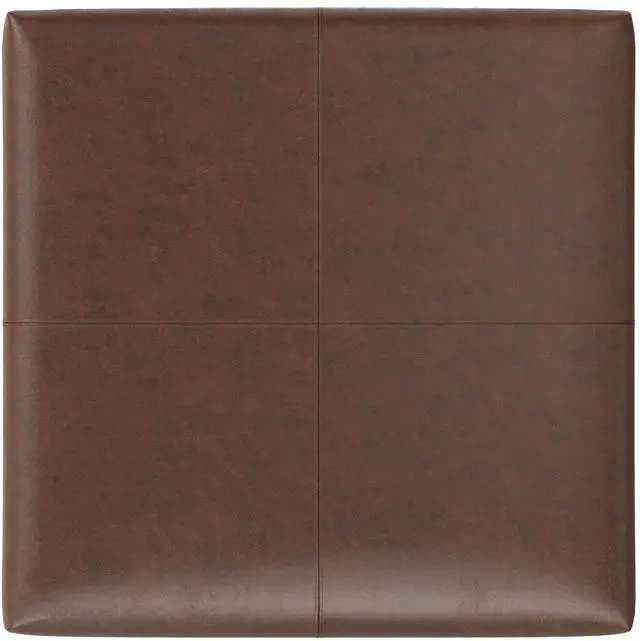Upholstered in a Distressed Chestnut Brown Vegan Faux Leather with stitching detail.