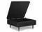 Features a hydraulic lift up lid that opens to a large interior storage space and child safety hinge
