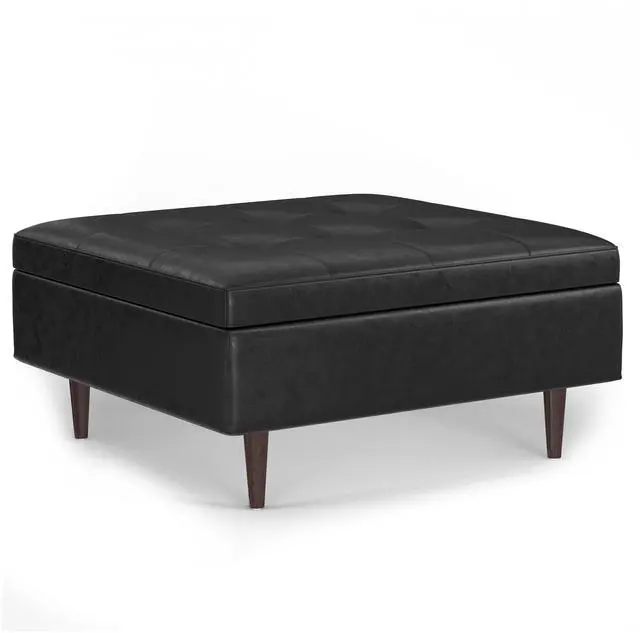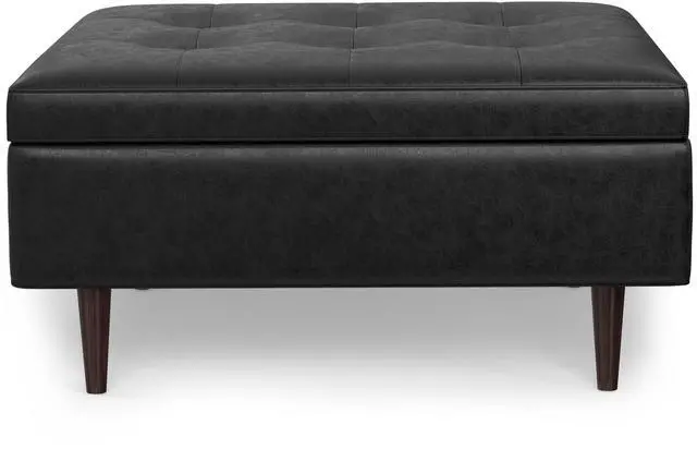 Upholstered with a durable Distressed Black Vegan Faux Leather