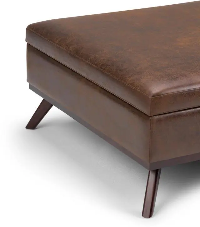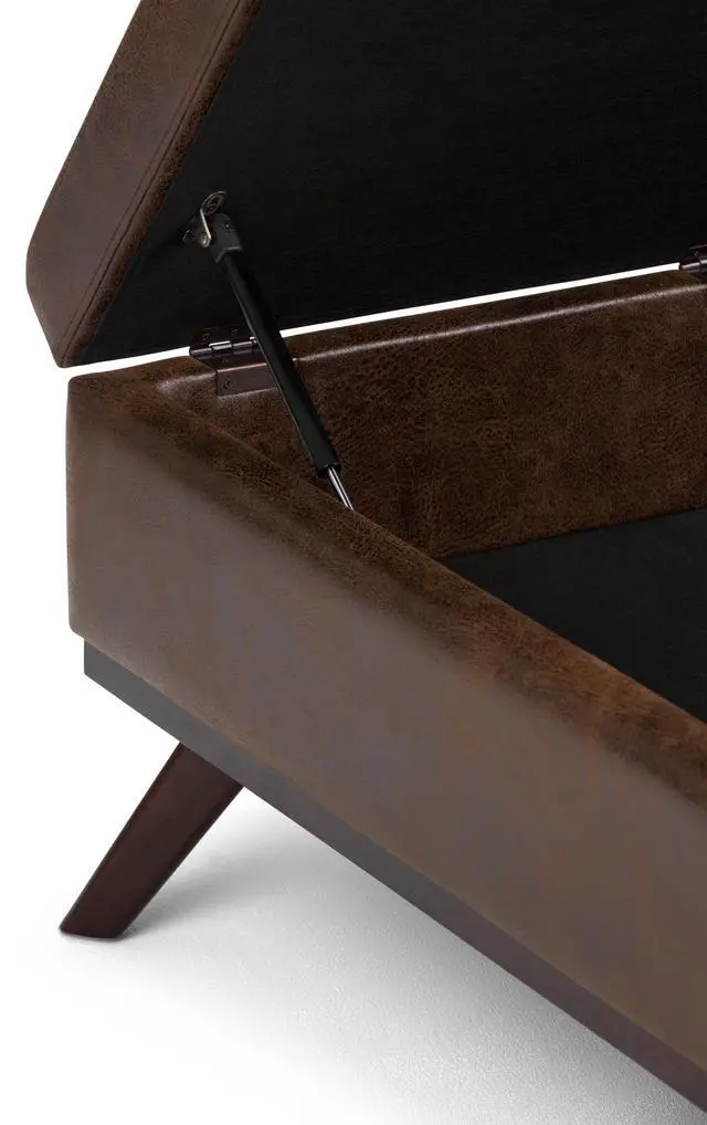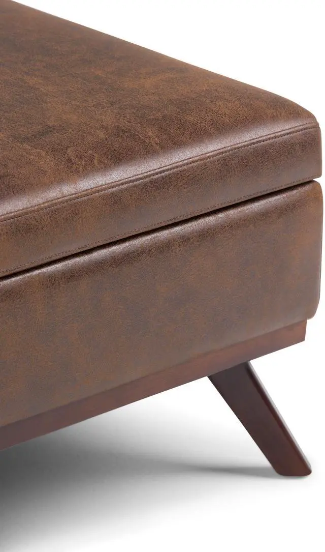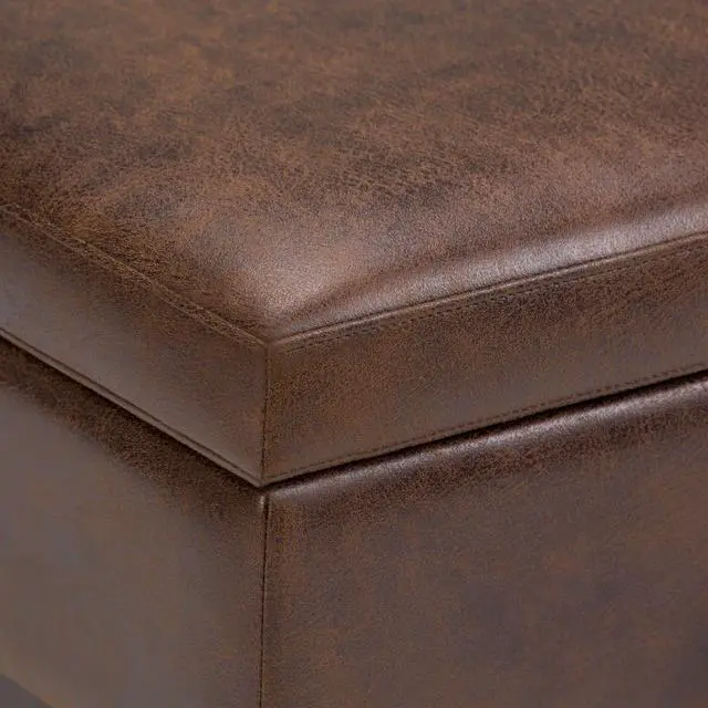 Upholstered with a durable Distressed Chestnut Brown Vegan Faux Leather