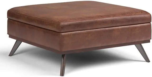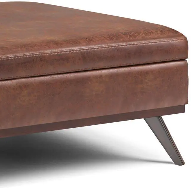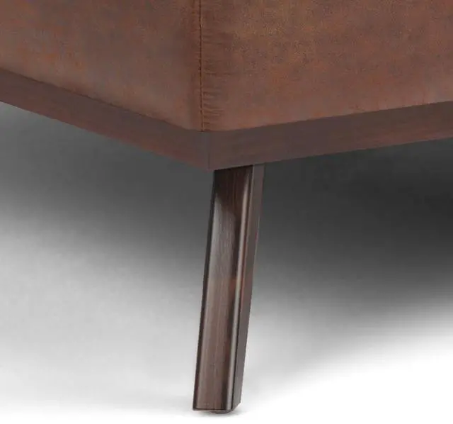 Upholstered with a durable Distressed Saddle Brown Vegan Faux Leather