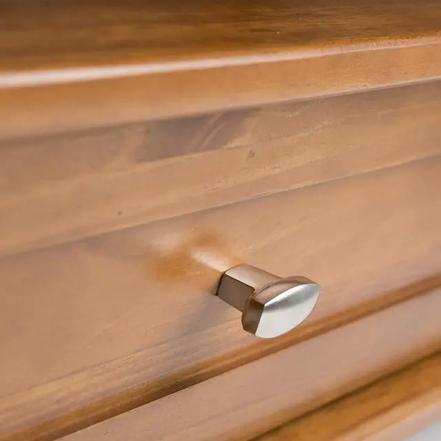 Hand-finished with a Light Golden Brown stain and protective NC lacquer to accentuate and highlight the grain and the uniqueness of each piece of furniture
