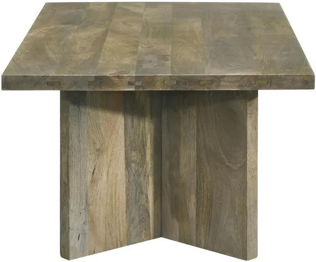 The table's design features a primitive-inspired style, perfect for complementing both modern and traditional interior decor