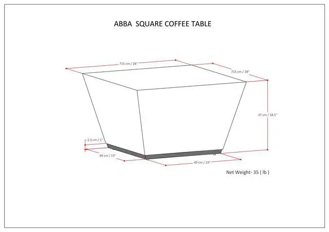Dimensions: 28"D x 28"W x 18.5"H