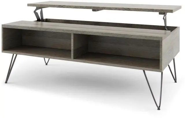 Features split lift up top with large storage area and two (2) open compartments for plenty of storage