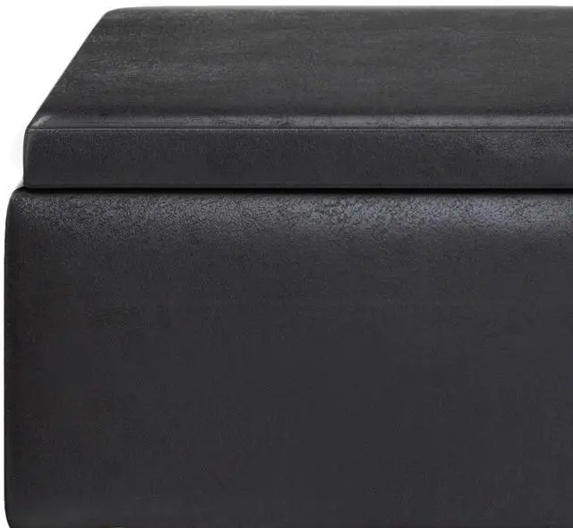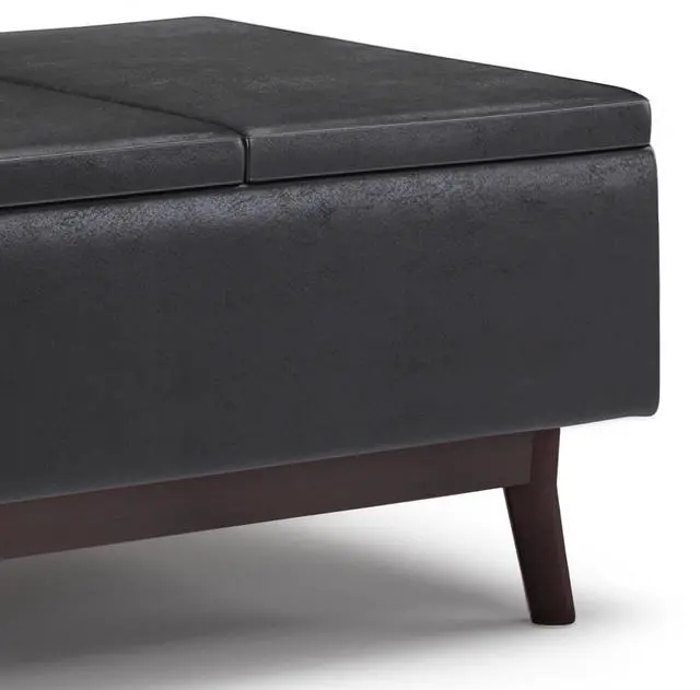 Upholstered with a durable Distressed Black Vegan Faux Leather