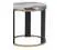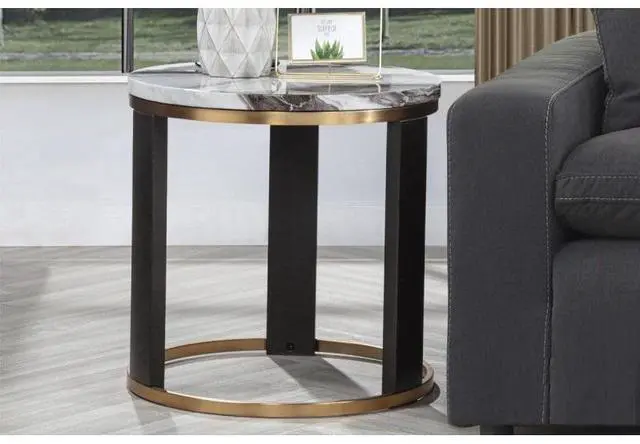 Made with decorative paper laminates and MDF substrate Metal frame with antiqued brass finish Legs with replicated dark walnut wood grain laminate Assembly required