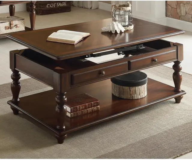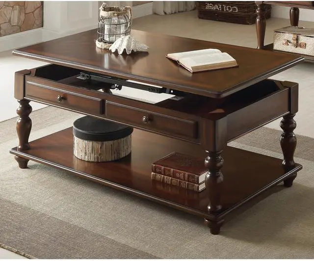 The table has a lift top that provides extra storage space or a display area for your decorations or treasures