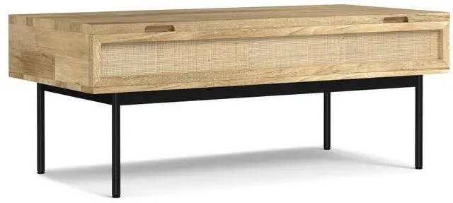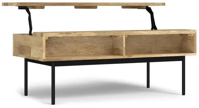 Features a split lift-up tabletop with large storage area and two (2) open compartments for additional storage space.