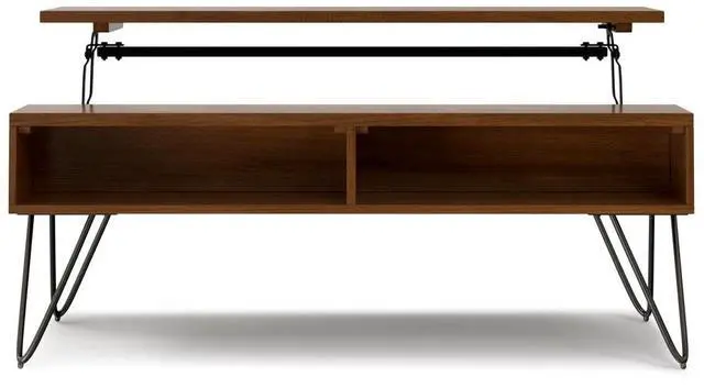 Features split lift up top with large storage area and two (2) open compartments for plenty of storage