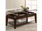 The coffee table is equipped with an easy lift top, providing access to two storage spaces