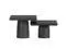 Both tables are hand-finished with lightly textured surfaces; the taller table is in Graphite and the shorter table is in Black Nickel for a subtle contrasting effect.