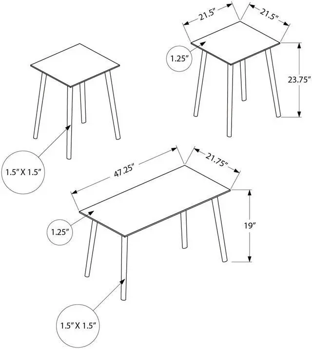 Trendy 3-piece table set featuring a coffee table and two end tables, perfect for modern homes.