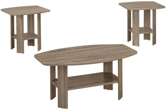 3-piece set includes 1 coffee table and 2 matching end tables with ample surface space and lower shelves for magazines, books, or other decorative items