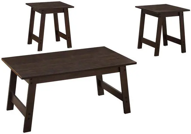 3 piece table set includes a rectangular coffee table and two matching square end tables