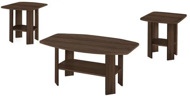 3-piece set includes 1 coffee table and 2 matching end tables with ample surface space and lower shelves for magazines, books, or other decorative items