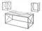 Product Dimensions (coffee table): 42 Inch L x 22 Inch W x 18 Inch H; 18 Inch L x 18 Inch W x 22 Inch H (end tables)