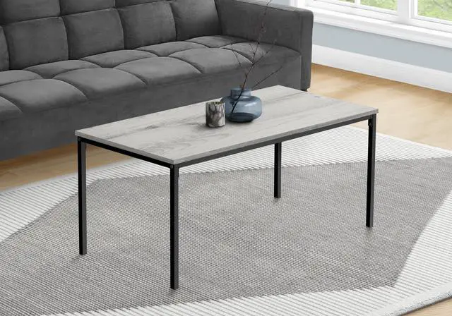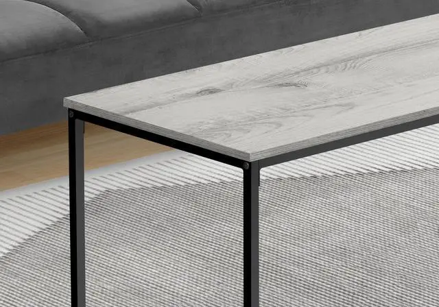Bring flair to your living room with this cocktail table, featuring a grey laminate finish and a striking metal leg base.