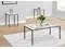 The easy to clean table tops on the coffee table and 2 end tables are crafted from high-density laminate material for durability.