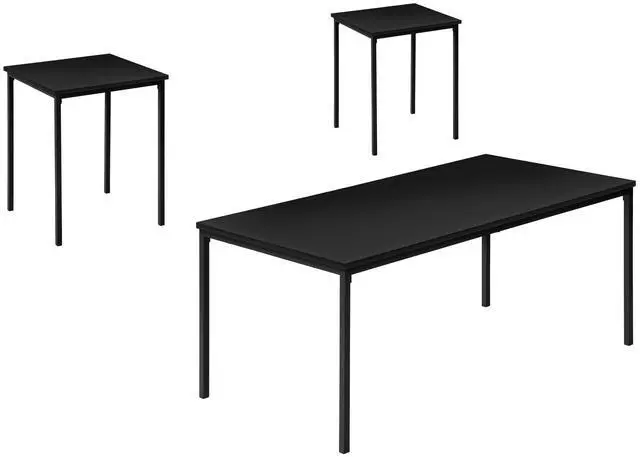 This fashionable 3-piece coffee table set features a contemporary design with black laminate tops and sleek black metal frame.