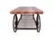 The wooden top, free of apron, offers a clean, minimalist surface, while the open bottom shelf provides ample space for storage or display, with a unique diamond-shaped design.