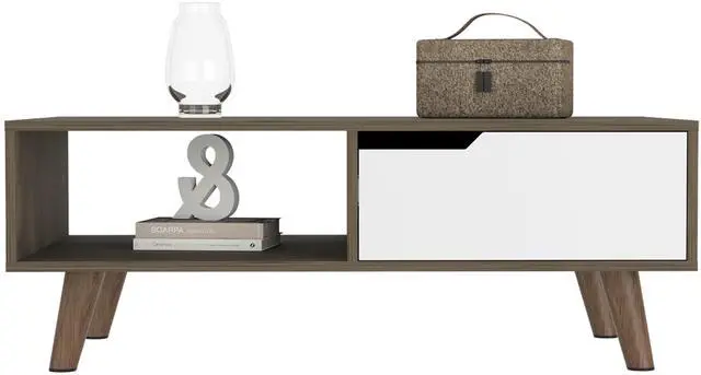 Coffee Table, One Open Shelf, One Drawer, Dark Brown/White