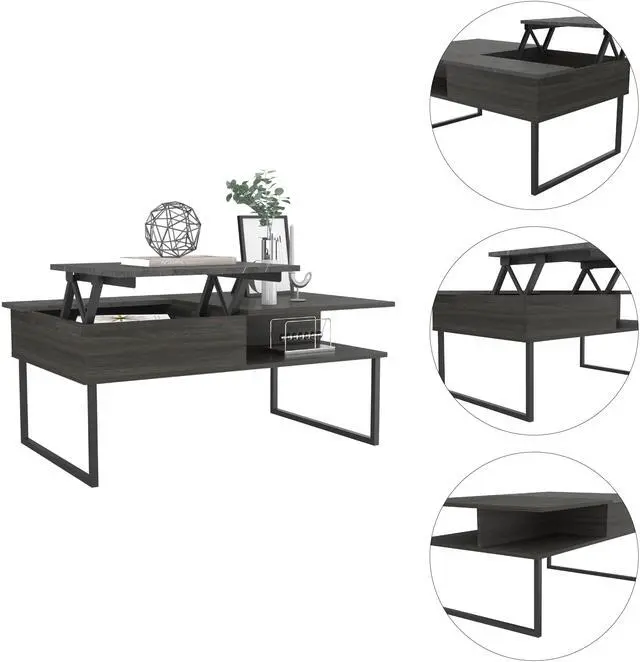 Carbon Espresso and Onyx 1-Shelf Lift Top Coffee Table