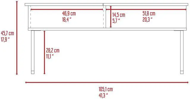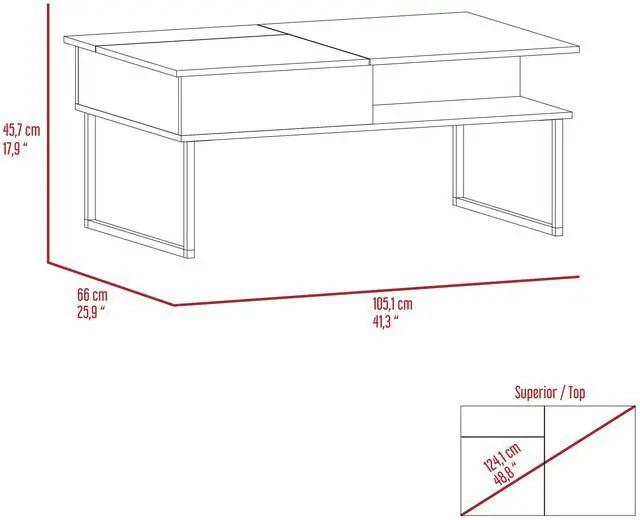 • Lift top with concealed storage