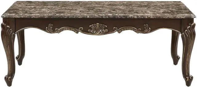 Formal Traditional Luxury 1pc Marble Top Cocktail Table Cherry Finish with Gold Tipping Living Room Furniture
