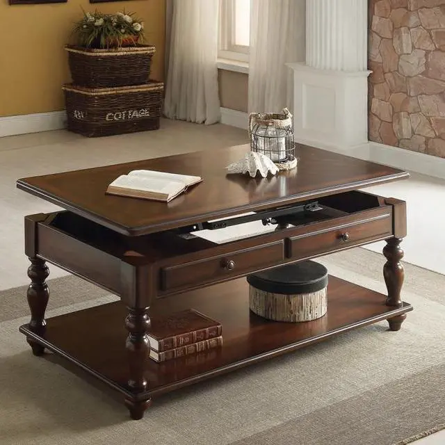• Rectangular Leg Table w/Lift Top & Bottom Shelf, Top: Lift & 2 storage compartments, Wooden Top & Apron